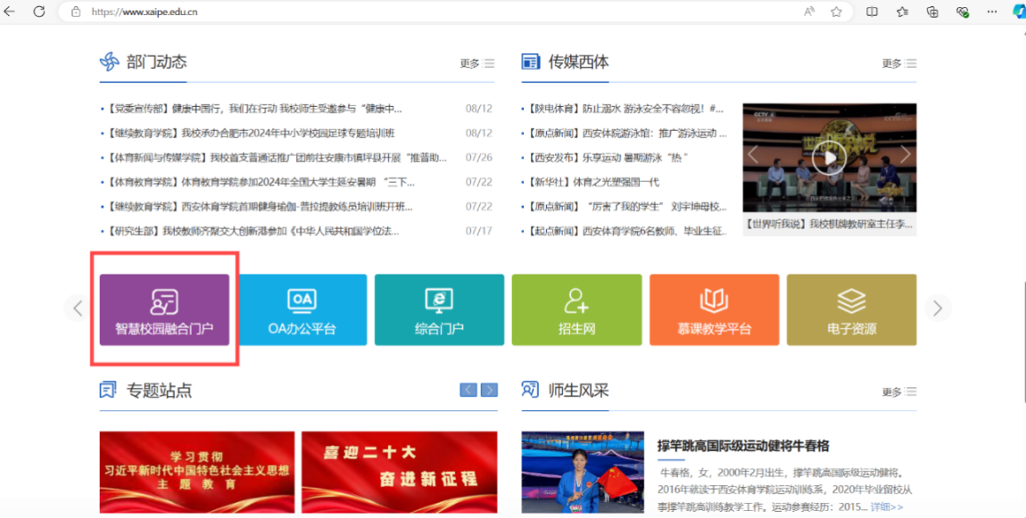 访问方式1:电脑或手机浏览器访问西安体育学院官方网站/