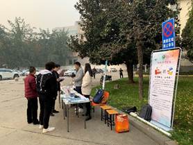 为保证本次活动能尽可能全面的服务到全校每一位师生,网络管理中心按照主要面向对象的不同将活动分为上、下午两场进行,地点分别定于我校食堂南门对面(主要面向学生用户)和1号行政楼外(主要面向教工用户)。首先,工作人员以展板、海报等形式对业务系统功能进行简单介绍;接下来,为用户分发了三个业务系统的使用手册;最后,针对感兴趣的用户提出的问题,工程师们使用笔记本电脑详细为其解答,并邀请用户直接参与体验系统功能。