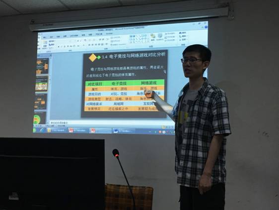 为了更好的讲授该门课程,计算机教研室所有教师先于2018年3-5月对国内相关高校、电子竞技俱乐部等进行了前期调研,主要收集与该课程相关的教材、教学大纲、教学内容、教学资源等,在借鉴汇总他们的经验之上,结合我院实际情况,计算机教研室所有教师经过多次研究决定将该课程划分为8个模块,每两个老师负责一个模块进行教学讲义、教学内容、教学课件、教学手段和方法的制作与设计。2018年6月26-27日,教研室教师对自己负责的模块进行了展示,其他老师参加学习、交流、沟通,最终提出修改意见。这是一次集体学习的过程,每位教师既是课程的学习者,也是课程的讲授者,课程相关内容在这种群策群力、集体智慧的交流碰撞中得到进一步完善和提升。