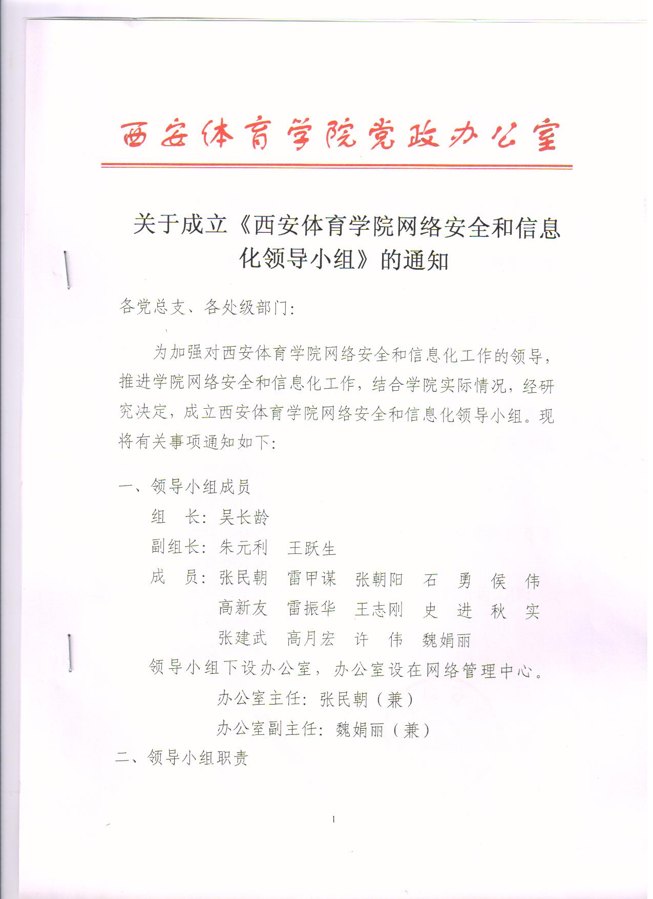 关于成立《西安体育学院网络安全和信息化领导小组》的通知
