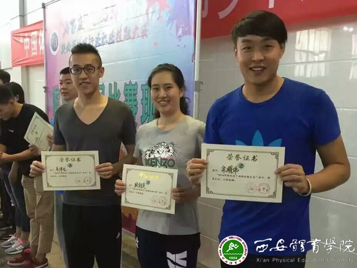 游泳教研室教师(左起:朱伟龙、殷剑侠、宋耀伟)包揽个人赛前三名