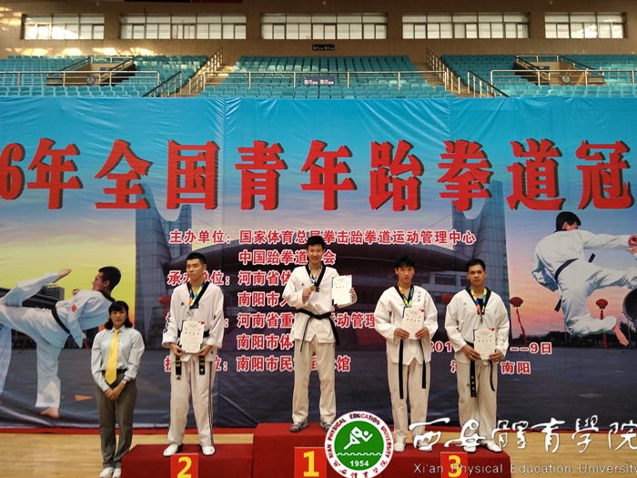 本网讯9月7日—9日,由国家体育总局拳击跆拳道运动管理中心、中国跆拳道协会主办,河南省体育局、南阳市人民政府承办,河南省重竞技运动管理中心、南阳市体育局协办的2016年全国青年跆拳道冠军赛在南阳市体育中心体育馆举行。在省体育局和学院的关心和支持下,我院拳跆中心运动员在此次比赛中为陕西取得1金1铜和一个第五的优异成绩。