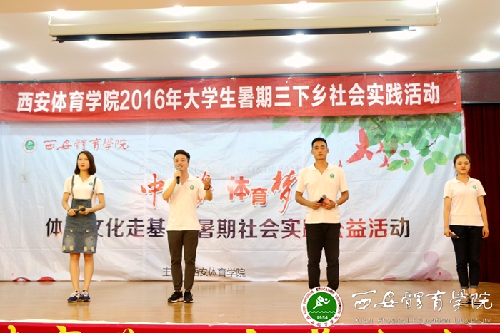 本网讯 为庆祝中国共产党成立95周年暨红军长征胜利80周年,深入开展“两学一做”学习教育,引导当代大学生理解贯彻国家“一带一路”倡议,树立与祖国共奋进、与时代同进步、与社会齐发展的信念,积极投身“三个陕西”建设,我院于7月12日至19日开展了主题为“中国梦 体育梦”体育文化走基层的大学生暑期“三下乡”社会实践活动,4支服务队一同奔赴陕西安康、延安等地开展全民健身示范与指导、体质测量、体育艺术展演、课题调研、体育法律法规宣讲、普通话推广等内容的社会实践活动。志愿者们积极投入、默契配合,圆满地完成了各项任务,收到了良好的社会反响。