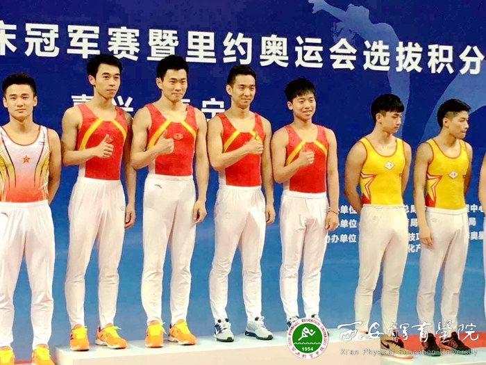 由于陕西省在蹦床项目一直没有正式组建队伍,为了帮助我院优秀蹦床队员争取更多参与大赛积累比赛经验的机会,我院竞技体育运动学校经过多方努力,在男子方面,最终与蹦床项目的传统强队上海队达成合作。我院男子蹦床运动员宁文龙自2014年起代表上海队参加本周期包括年度比赛和全运会在内的各类重大赛事。在本届男子团体决赛中,宁文龙第一个出场,发挥出色,获得58.750分,不仅开了个好头,也稳定了军心,对上海队夺冠起到了重要作用,最终他与队友肖金雨、高磊帮助上海队以177.225的总成绩夺得男子团体冠军。