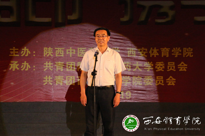 陕西中医药大学党委书记刘勤社代表全校1万6千名师生向我院全体演职人员表示由衷的欢迎与问候。我院党委副书记朱元利在随后的致辞中赞扬中医药大学浓厚的文化氛围,指出文体不分家,医体不分家,希望两校心心相印,携起手来,为中华民族体质健康,为两校长久的友谊,为伟大的民族复兴梦共同努力。