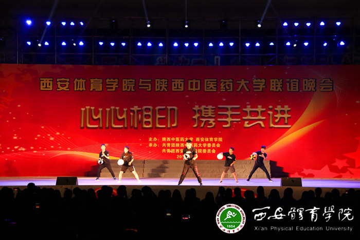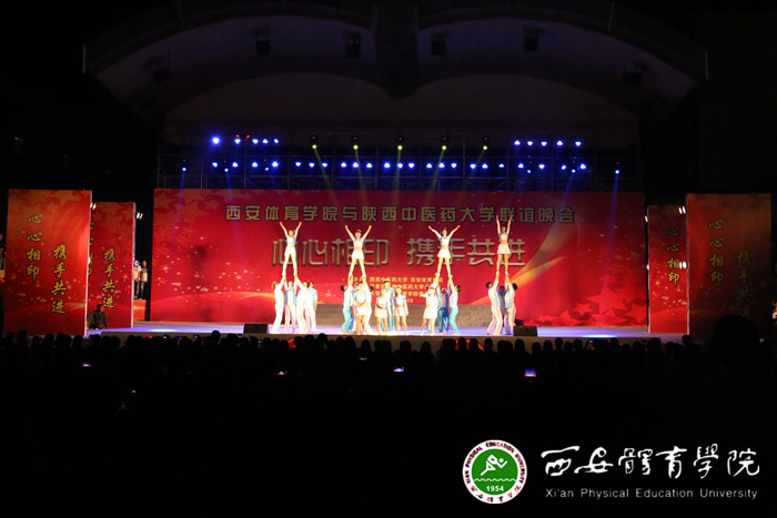 曾获2015年陕西省大学生舞蹈大赛一等奖的《喜鹊喳喳喳》用欢快的节奏和美丽的舞姿为整场晚会增添了一份喜意,同学们用精彩的舞姿展现出我院舞蹈专业高质量的教学水平。当曾参加今年央视春晚分会场演出的节目——技巧拉拉操登场时,场下的万名观众充满了期待,台上表演的同学们不负众望,他们成功完成的一个个高难度的高抛收获了观众经久不息的掌声,许多女观众更是发出尖叫声,直呼过瘾,演出现场气氛越发热烈。