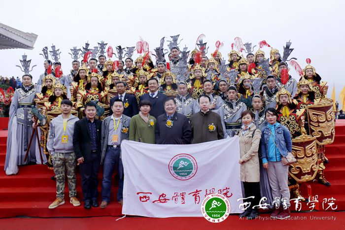 本网讯 在丙申(2016)清明公祭轩辕黄帝典礼告祭乐舞部分,由我院团委选派的体育艺术系48名男生与其他两所高校学生参加了《乐祭》和武舞部分的演出。乐舞告祭向来是公祭典礼上备受瞩目的亮点,由《序礼》、《乐祭》、《云祭》、《龙祭》主题段落串联组成。待到乐舞告祭环节开始,来自我院体育艺术系的表演者手捧祭品,缓缓的走向中心祭台,至诚至虔地向观众展示初献奉香、亚献进爵、终献献果的“三献”祭礼仪程,其余的手持钺盾,以现代的方式解读和演绎“武以象功”,表达了中华儿女对始祖慎终追远,高山仰止之情和盛世中华国家大治繁荣昌盛的精神蕴涵,在《龙祭》段落中,一条56米长的“中华龙”盘旋、腾跃升空,飞向蓝天,演绎“龙驭在天”,呈现“同祀共仰”之盛典。