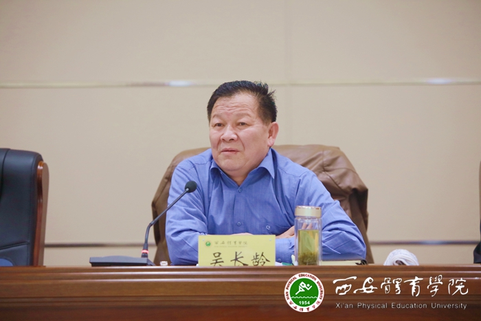 吴书记在谈到班子存在的不足、今后努力方向及改进的措施时强调:要敢于碰硬,敢于担当。围绕学院难题,一心一意抓破解。党委书记亲自牵头,做好“两支队伍”和“两个争取”。“两支队伍”一是组建新的优秀专业运动队,二是选派优秀专业技术人才队伍,为陕西代表团参赛项目的扩容及竞赛管理、场馆运营、仲裁裁判、运动康复等提供服务。“两个争取”一是要争取承担2021全运会更多比赛任务,培养高水平运动员,为陕西代表团在全运会取得好成绩做贡献。二是争取我院新校区的建设,围绕2021年全运会和创建足球学院,取得省委省政府及省发改委、省体育局、省教育厅和省金融办的支持,这是压倒一切的任务,也是我院“十三五”规划的“龙头”工作。吴书记还指出:创办足球学院、建设新校区、服务2021年全运会,三者紧密相关,应统筹考虑。