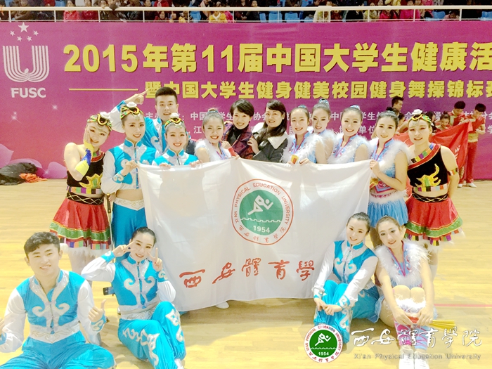 在本次“中国风健身舞”项目比赛中,我院代表队共有14人参赛。所参加的“中国风健身舞——轻器械规定动作:响扇;民族舞蹈系列规定动作——草原雄鹰、神秘雪山”三项均获冠军。另外,我院代表队在本次大赛中团结协作,表现优异,被大赛组委会授予“体育道德风尚奖”;带队教练俞丹获得“优秀教练员”荣誉称号。