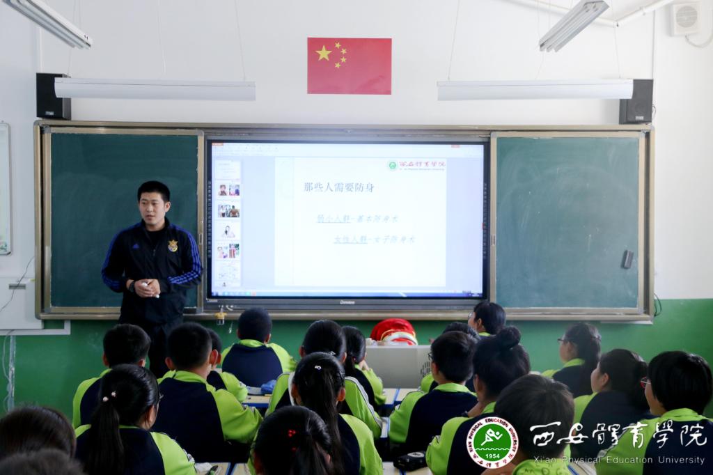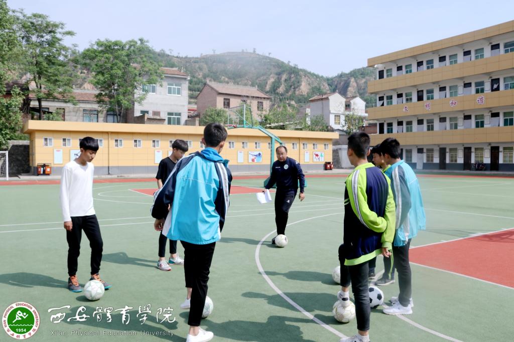 足球学院教师席海龙为城关中学师生讲授足球传接球技巧