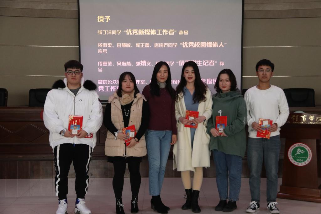 随后,顾彬老师宣读2019年新媒体中心业务技能比拼大赛中获奖名单,倪威胜老师宣读2019年编辑部优秀个人、优秀集体的表彰决定,并由张媛、孙妍两位老师进行颁奖,希望全体成员以优秀集体和先进个人为榜样在新的一年里再创辉煌。之后杨柳老师为新媒体编辑部的45位同学颁发了聘书。