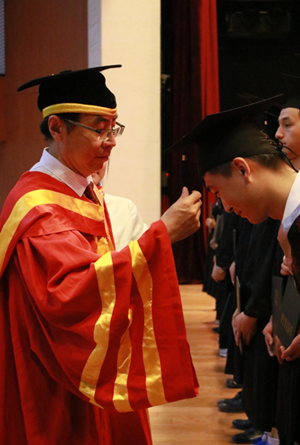 毕业典礼最后,体育传媒系学生代表魏都带领全体毕业生庄严宣誓后,在一首活力动感的《远走高飞》歌声中,典礼落下了帷幕。