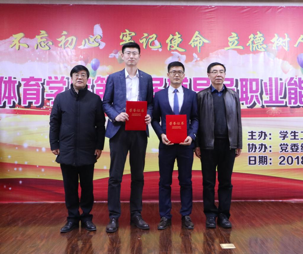 西安体育学院党委书记黄道骏、院长朱元利为获奖辅导员颁发二等奖