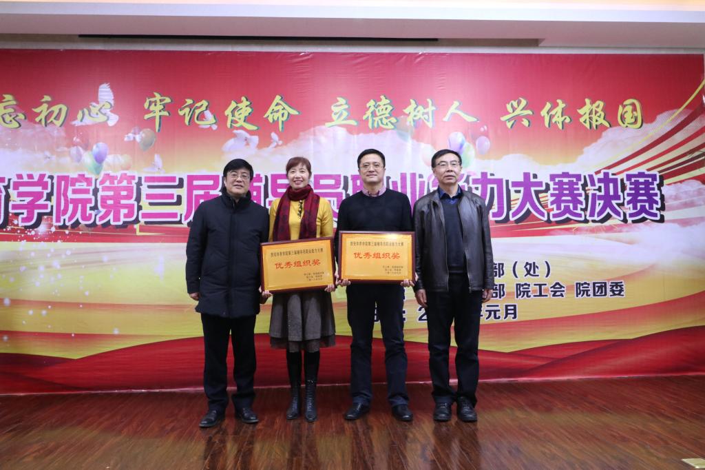 西安体育学院党委书记黄道骏、院长朱元利为获奖系部颁发优秀组织奖
