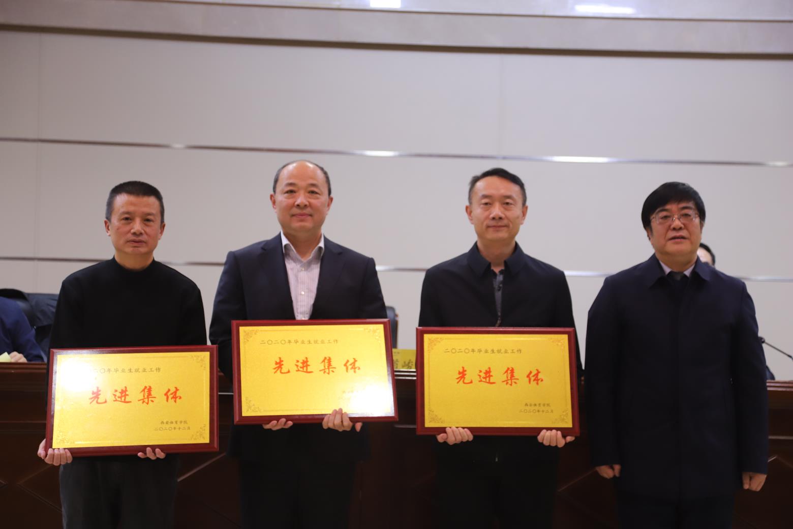 会上,黄道峻、朱元利为获得2020届毕业生就业工作的先进集体、先进个人颁发奖牌和证书,朱元利宣读了《西安体育学院2020年毕业生就业工作表彰决定》。学工部长王志刚通报了我校2020届毕业生就业工作总体情况、存在的不足、下一阶段工作思路与目标。各二级学院主要负责人总结2020届毕业生就业工作并就今后工作设想、措施与建议进行交流,进一步明确2021届毕业生就业工作目标和任务。
