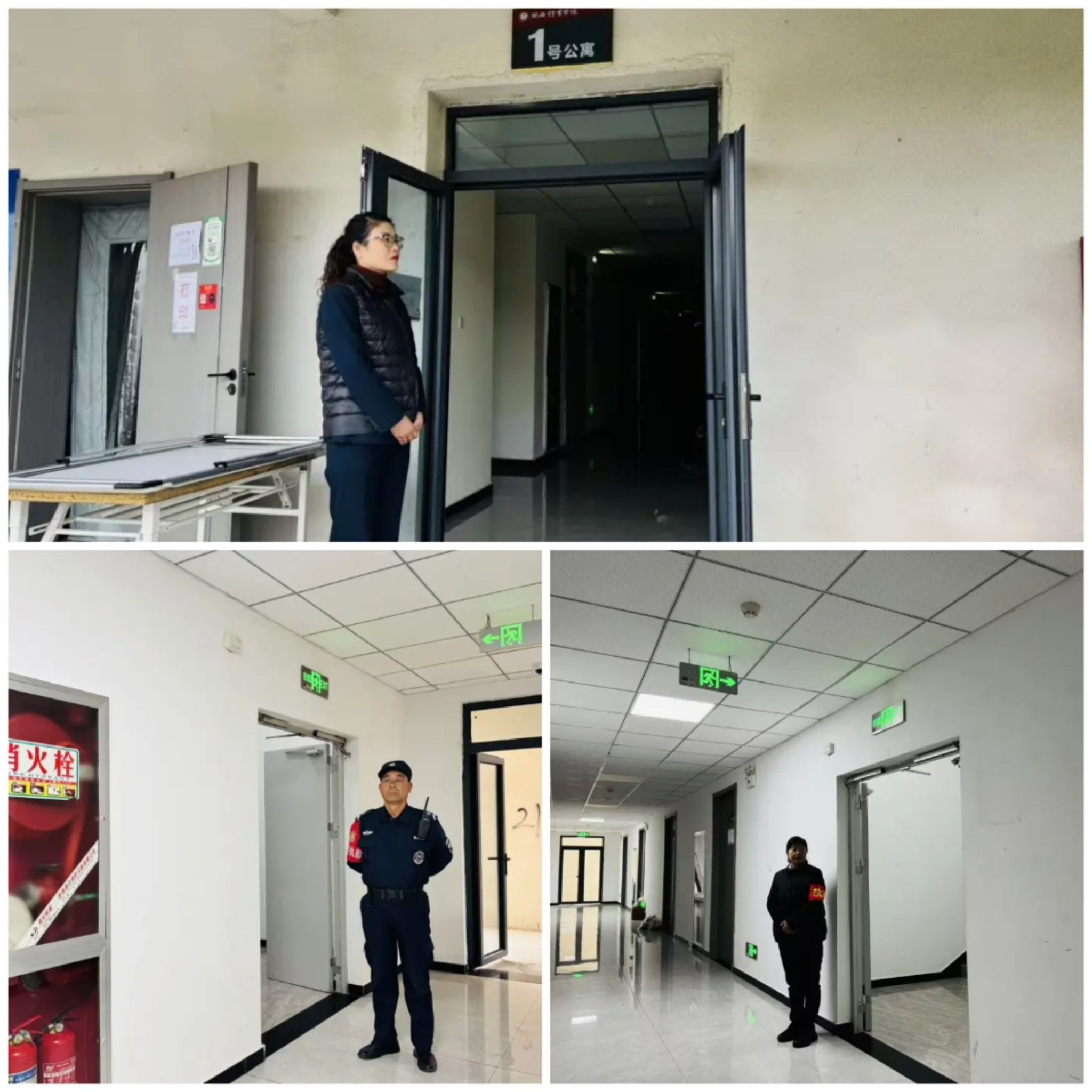 随着疏散指令发出,学生们在辅导员、安保人员等引导下,遵循“先下后上、分层疏散”原则,以湿毛巾捂口鼻、弯腰低姿的规范动作,从1号公寓4个安全出口及两侧消防楼梯有序撤离,错峰分流避免拥堵,快速集结至餐厅东侧、南侧临时集合点,各班级迅速清点人数并上报。