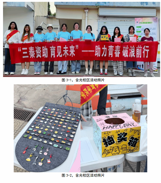 本年度527日、612日,学工部分别在鄠邑校区和含光校区开展三秦资助,育见未来学生资助政策宣传活动。活动以普及资助政策为核心,助力学生深入了解国家及学校奖助体系,打破信息壁垒,确保政策惠及每一位有需要的学生。以此为起点,学校及各二级学院围绕思政引领”、“学业指导”、“心理赋能”、“素质提升等主题,开展系列资助教育活动,助力家庭经济困难学生全面发展。