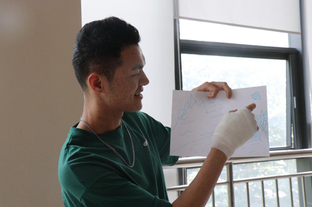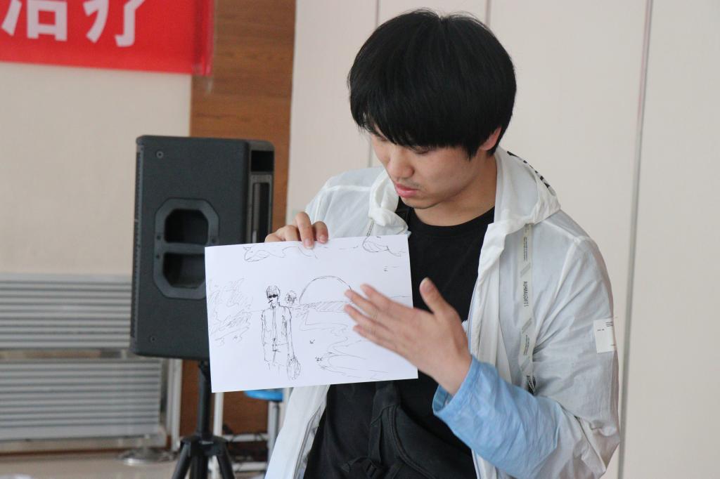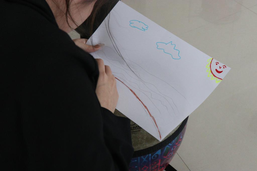 活动进入第二个互动游戏“鼓点变奏”,大家围坐成一圈,郭威铭老师走到中心教大家如何敲击非洲鼓。大家跟着老师的节奏,轻轻地敲打起来,并逐渐加快节奏,非洲鼓带有磁性的的声音越来越悠扬。游戏尾声,在郭老师的鼓励下,每个参与者勇敢地展示了自己的鼓点节拍,大家深深地感受到了团队的鼓励与支持。最后,张缤老师带领参与者们在柔和轻快的音乐声中,聚焦此时此地的想法和感受进行自由想象。并邀请成员一一分享自己的音乐绘画作品,通过分享帮助大家寻找内心真实的声音。
