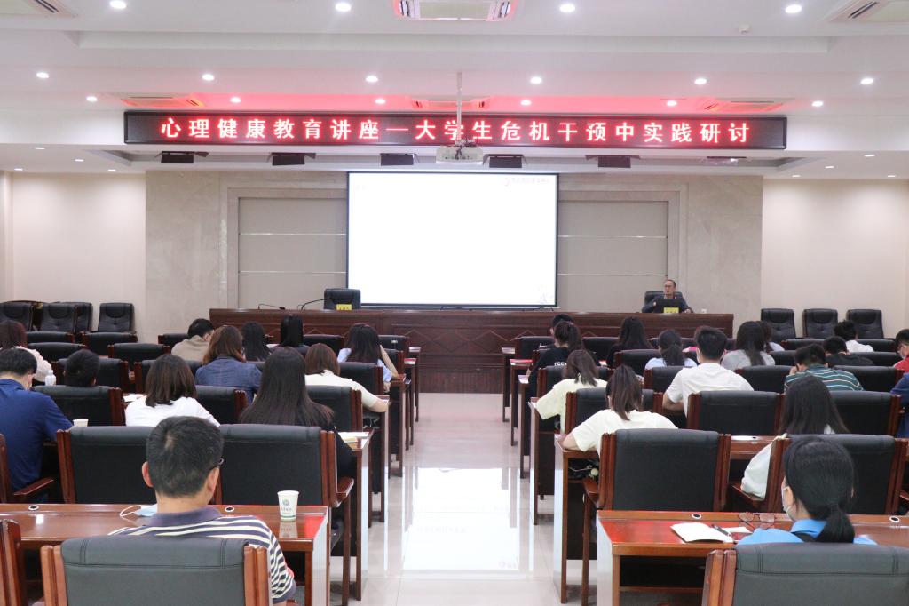 2022年5月18日下午2:50,“大学生危机干预中的实践研讨”讲座在二号行政楼六楼报告厅举行,西安国际医学中心心身科副主任医师邹学担任主讲嘉宾。全体专兼职辅导员、学工部工作人员和专兼职心理健康教育教师、后勤管理人员共50余人参加了此次讲座。讲座由学工部副部长张娟主持。