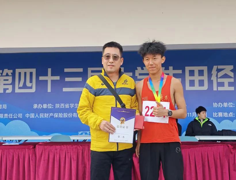 运动训练实验班赵于彬同学获得男子1500米第二名和男子800米第二名