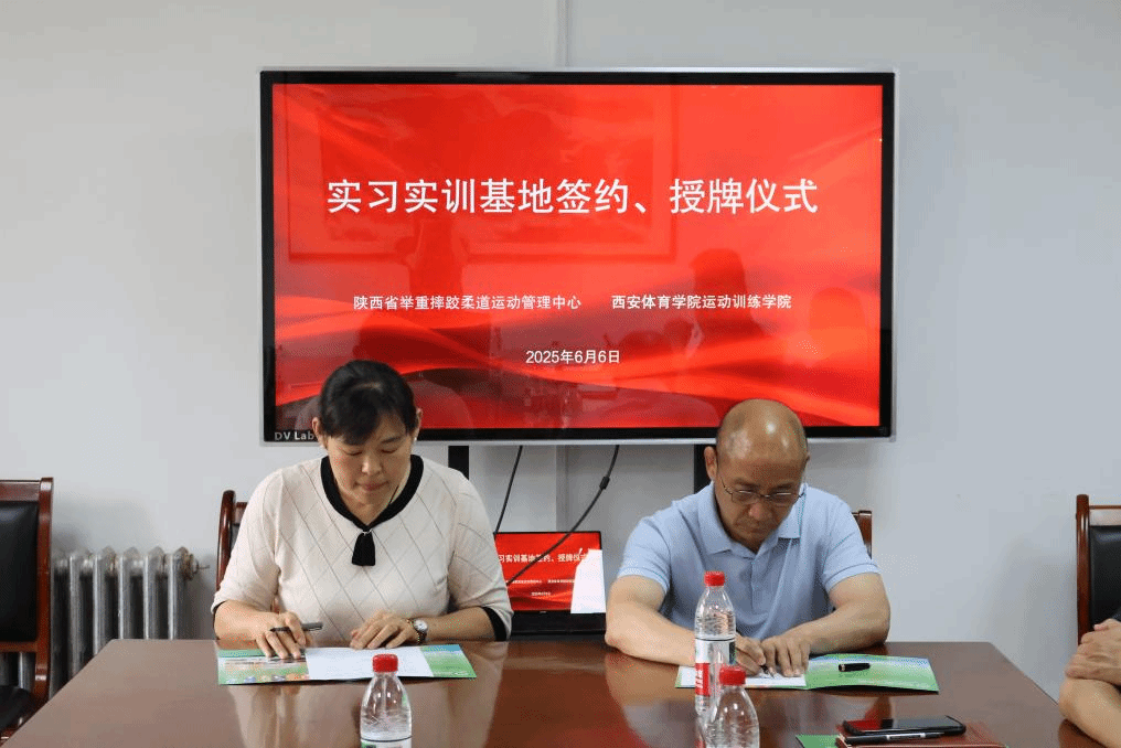 2025年6月6日下午,西安体育学院运动训练学院党委书记高月宏、党委副书记王青、辅导员吴奇一行前往陕西省举重摔跤柔道运动管理中心开展了访企拓岗活动,并举行实习实训基地签约与授牌仪式,携手推进体教融合,为体育人才培养与行业发展探寻新路径。