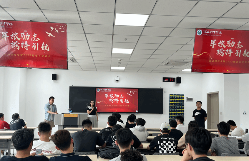 为激励运动训练学院2022级学生投身国防、逐梦军旅,明晰征兵政策6月18日下午14:30,运动训练学院2022级于教学楼307教室开展“军旅励志,榜样引航”征兵宣讲会,以榜样力量点燃青春报国热忱,运动训练学院2022级负责人李丹,辅导员吴奇以及有意向参军入伍的学生参会。