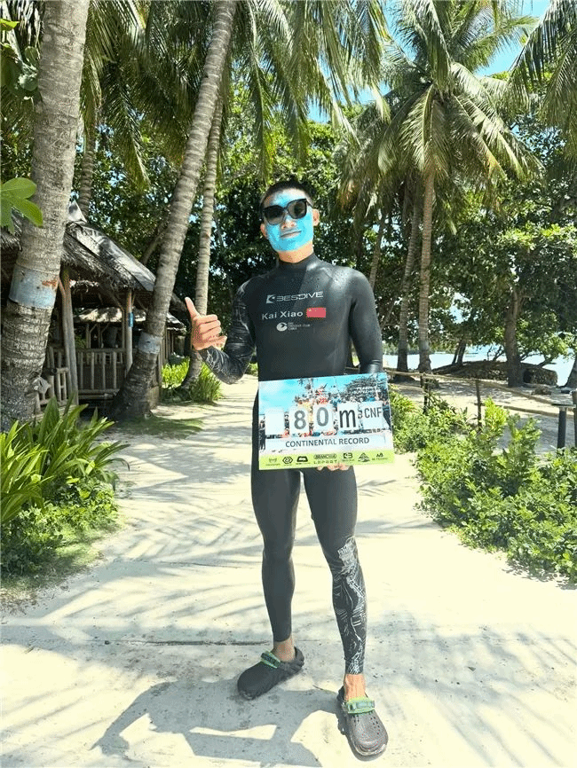 2025年6月8日—— 在菲律宾邦劳岛上举办了自由潜水亚洲杯(Asian Freediving Cup),中国运动员肖凯在此次比赛中上演了震撼人心的一幕。在最具挑战性的男子CNF(恒重无蹼)项目中,他连续三次下潜,以77米、80米和最终定格在82米的惊人深度,三次刷新亚洲纪录!这不仅让他成为该项目无可争议的新亚洲纪录保持者,更使他成为亚洲首位在同一赛事中三破洲际纪录的自由潜水运动员。