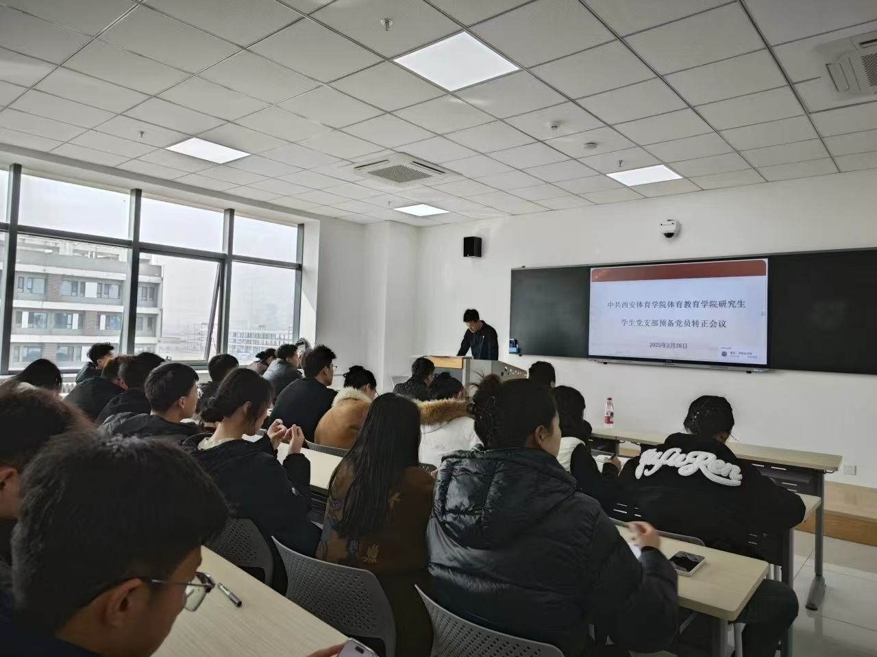 2024年2月28日上午,中共西安体育学院体育教育学院研究生学生党支部召开支部大会,专题讨论2024级成晓霞等五名预备党员的转正事宜。会议由党支部委员王鹏主持,支部全体党员参会。