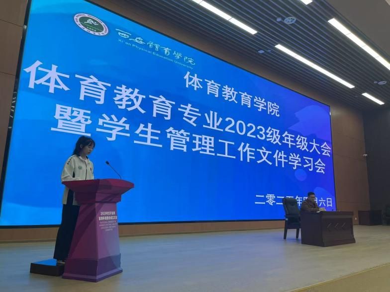 会议最后由2023级年级主任宗月民为本次大会做出总结发言,特别强调文件内容学习的背景及现状,说明不仅仅是学习文件,更是凝聚共识,营造共画成长进步愿景同心圆的过程。重点强调班团干部的中流砥柱职责作用,要锻炼过硬能力,善于发挥职责,作为年级的脊梁来引领新时代西体优秀青年的成长以及发现吸引优秀同学们加入年级建设与发展潮流中。会议还传达了学校关于晚熄灯通知,未来会利用“我在校园”进行查课。在“四季决战”背景下,体育教育专业2023级全体同学将以此次活动为新起点,努力学好本领,把学习成果转化为实际行动,在各自领域发光发热,携手书写专业成长的崭新篇章,向新时代全面发展的时代新人目标大步迈进。
