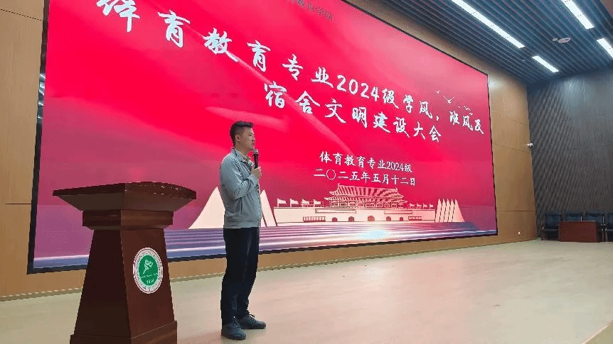 为贯彻落实立德树人根本任务,体育教育专业2024级于5月12日晚在西安体育学院教学楼报告厅召开学风、班风及宿舍文明建设专题会议。会议由体育教育专业2024级辅导员管融资、袁景峰主持,体育教育专业2024级全体学生参加。