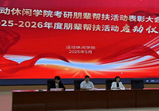 为深化学风建设,凝聚榜样力量,5月16日上午10点,西安体育学院运动休闲学院在鄠邑校区图书馆三楼隆重举行2024—2025年度考研朋辈帮扶表彰大会暨2025—2026年度帮扶活动启动仪式。学院党政班子成员、党政办、学工办、全体专兼职辅导员,以及2025届优秀考研学子、2026届全体本科生和新一届朋辈帮扶导师共同参与,党政办主任董鹏举主持会议。