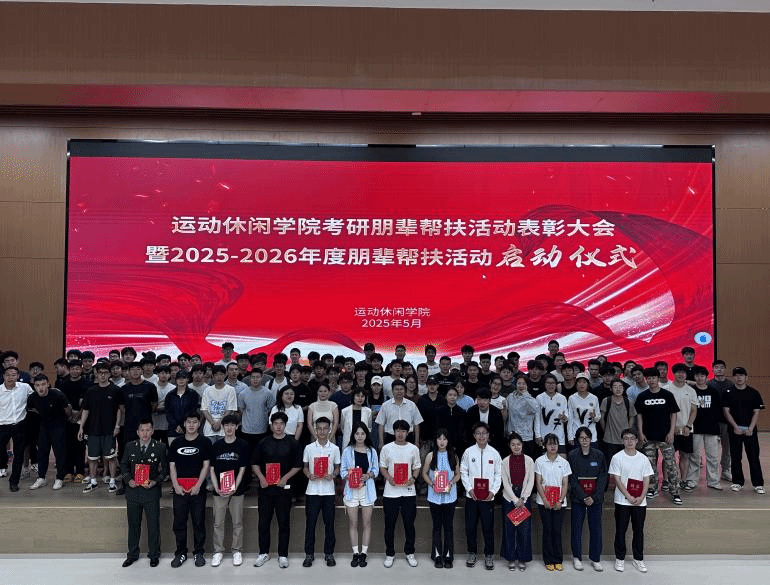 仪式在热烈氛围中拉开帷幕。副院长胡婕婷宣读《关于表彰运动休闲学院2024—2025年度朋辈帮扶考研互助小组优秀个人的决定》,学院党政领导为15名“优秀朋辈帮扶导师”及先进团队颁发荣誉证书,致敬他们在帮扶工作中的无私奉献与卓越成效。随后,2025届考研成功学生代表王重臣、刘付靖走上讲台,围绕备考规划、心态调适、应试技巧等核心问题倾囊相授,以亲身经历为学弟学妹点亮前行灯塔。