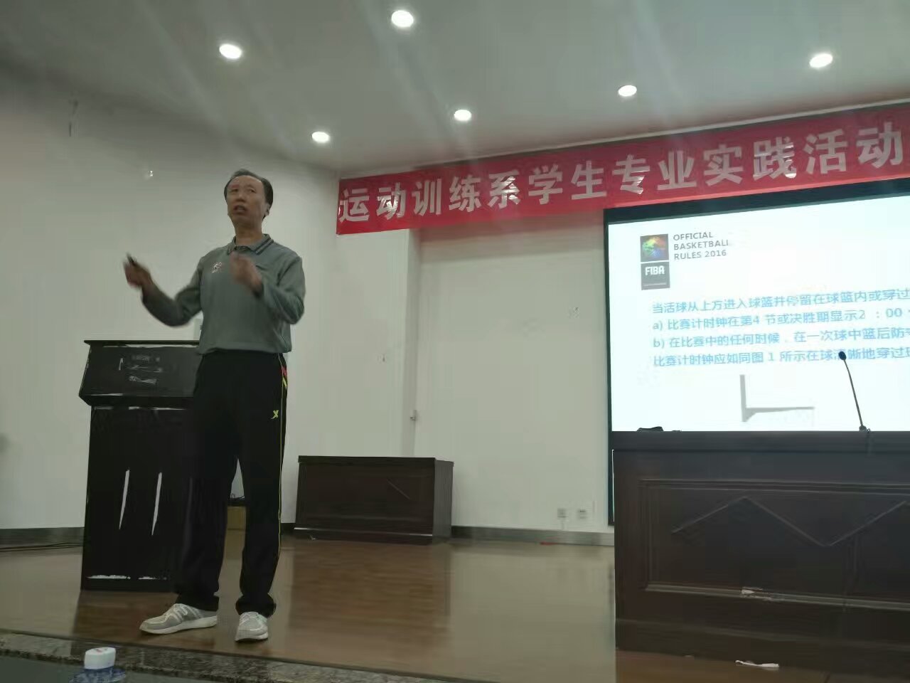 为进一步提高我院篮球专项学生裁判能力,篮球教研室于10月17日晚邀请西安交通大学教授、国际级裁判贺京周为我系篮球专项学生作了题为《最新篮球规则改动部分及三人制篮球裁判方法》的专题讲座。