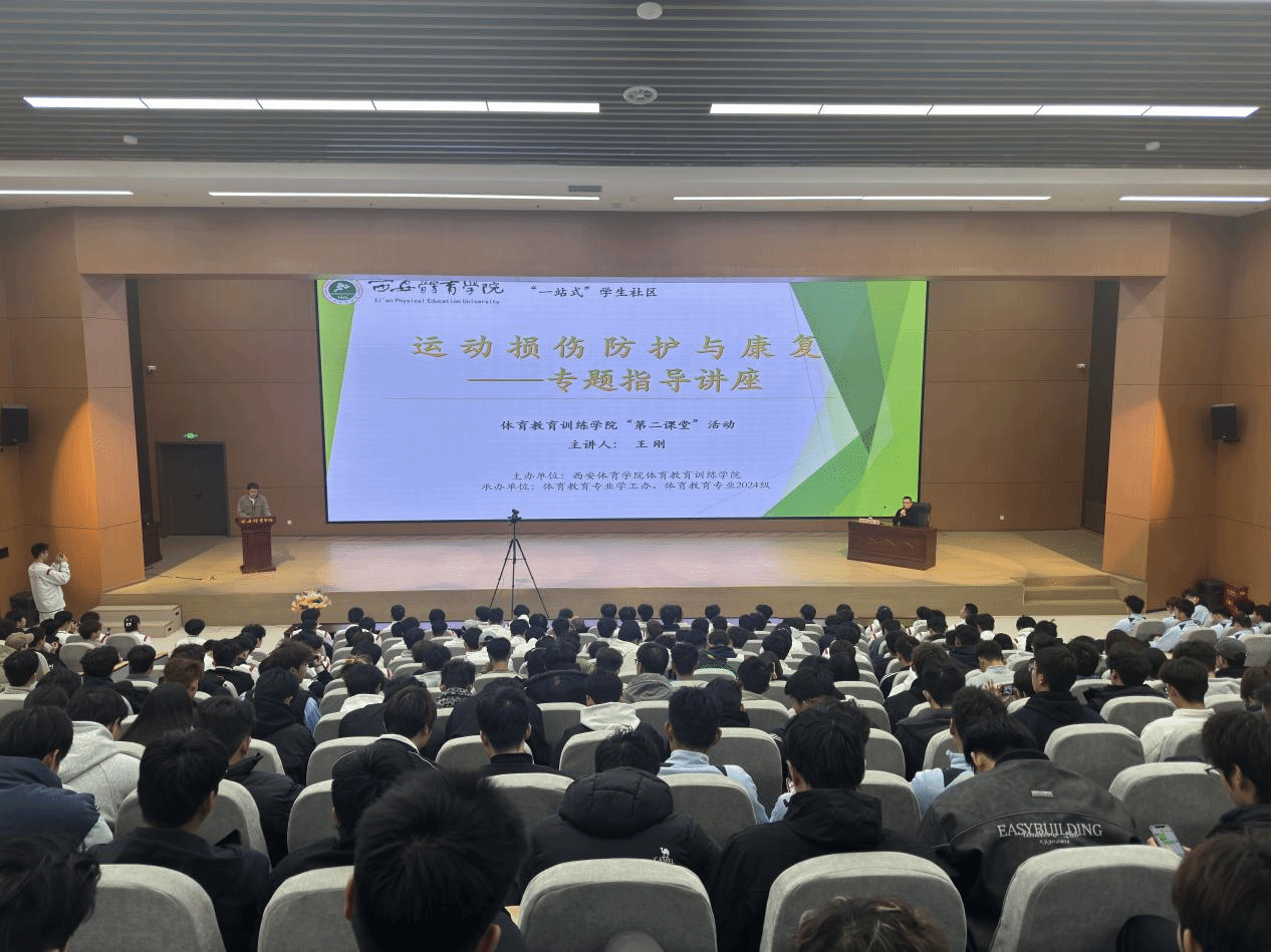 为充分发挥“第二课堂”活动在人才培养中的积极作用、提升体育类专业学生掌握运动损伤防护与康复的能力水平、促进学生全面发展,10月29日下午,我院特别邀请运动与健康科学学院王刚副教授于教学楼报告厅举办“运动损伤防护与康复”专题指导讲座,讲座吸引我院500余名学生参加。