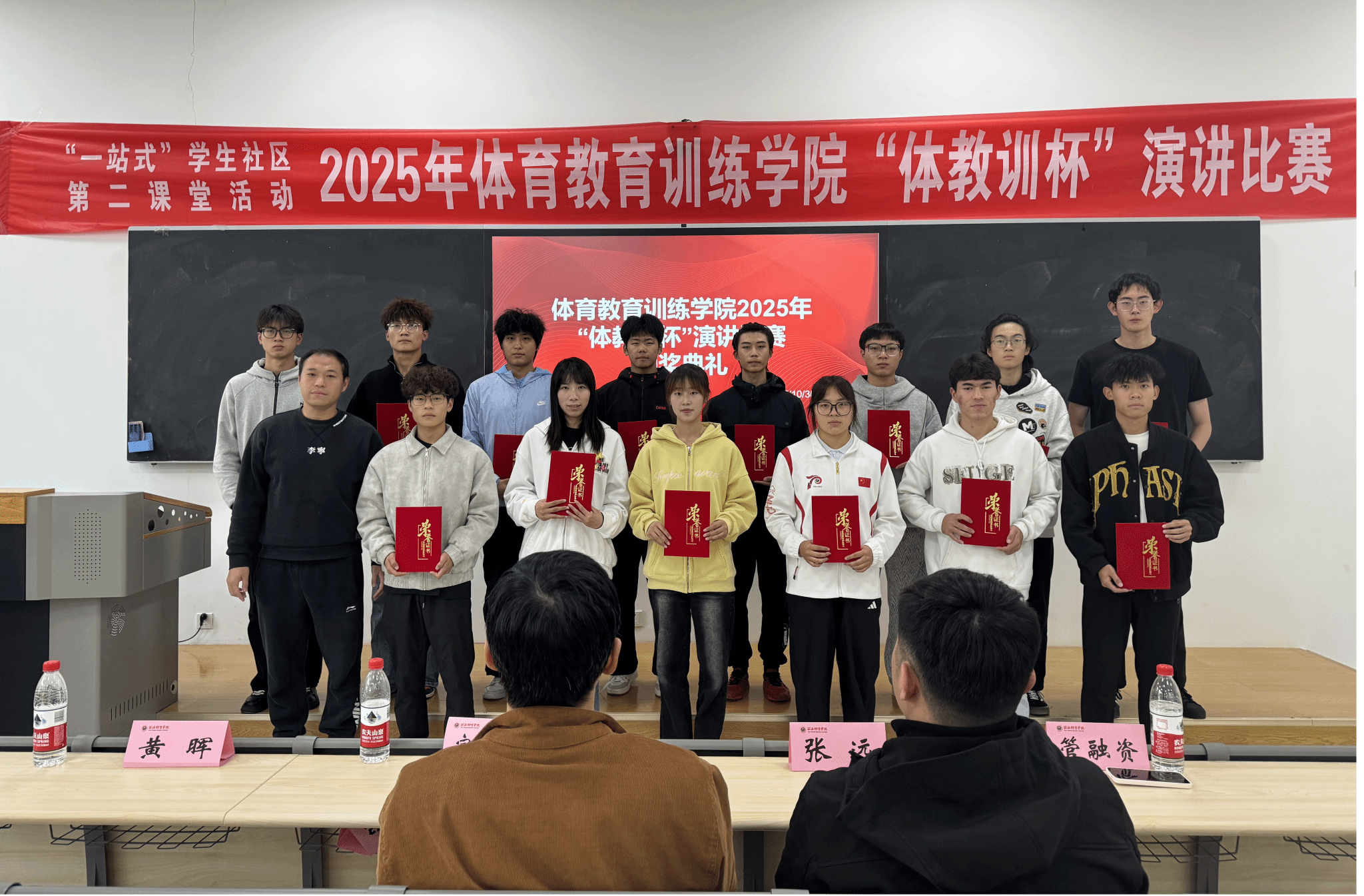 最后,体育教育训练学院年级主任宗月民在赛后总结中强调 “本次活动是通过扎根专业人才培养开展的,选手们以演讲比赛为载体深研理论思想认知,传播体育精神,赋能同学们的成长成才,以此进一步增强了同学们对专业的认同感和自豪感,提升专业了学习的热情与兴趣,为职业道路注入新的活力和动力,期望成为具有 ‘能练会教、能说会讲’体育核心素养的新时代体育人才。”