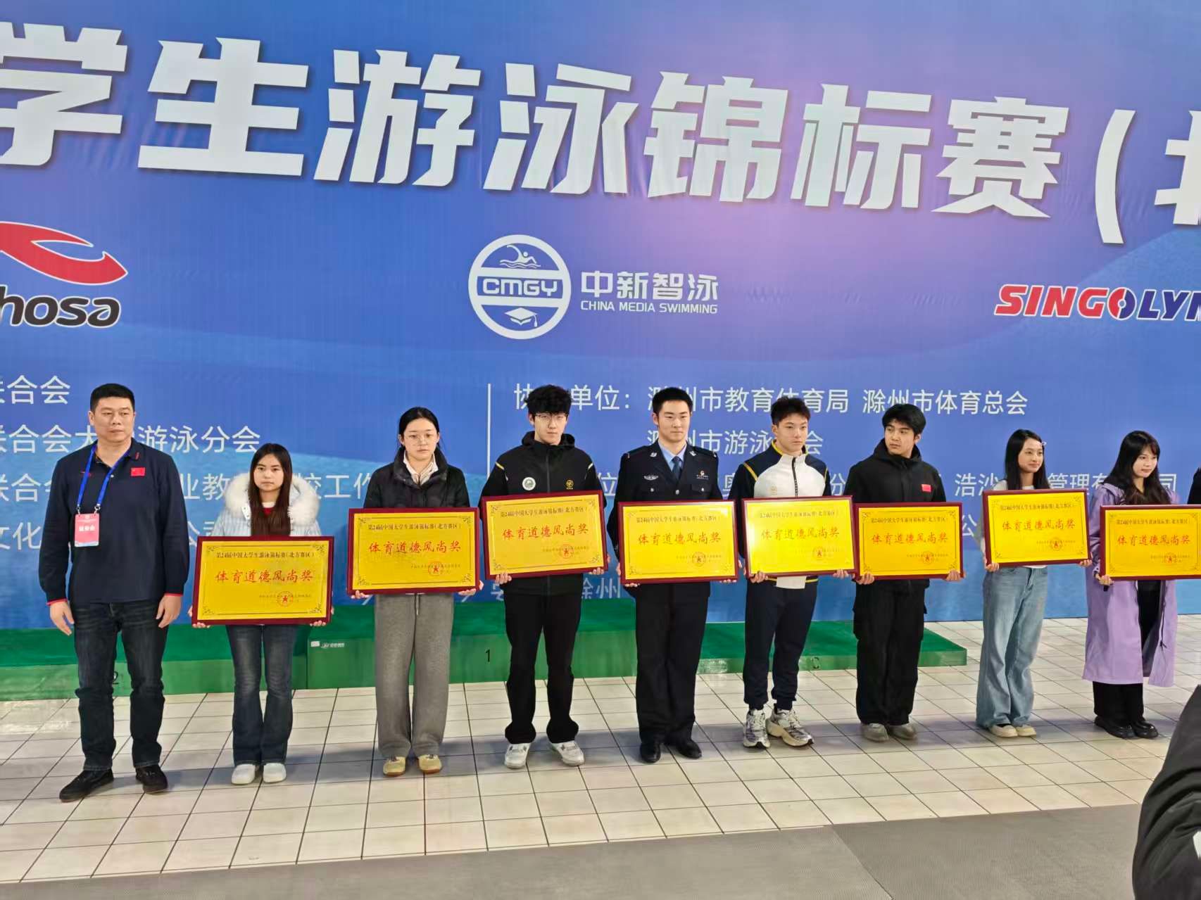 本次比赛我校选派15名学生运动员组成参赛队伍出征此次赛事,由游泳教研室殷剑侠和赵博阳老师带队参赛。最终斩获3银4铜以及多项前八名的优异成绩不仅以丁组团体总分第七的位次跻身前列,同时荣获体育道德风尚奖创造了我校在此类比赛中取得的最佳成绩!