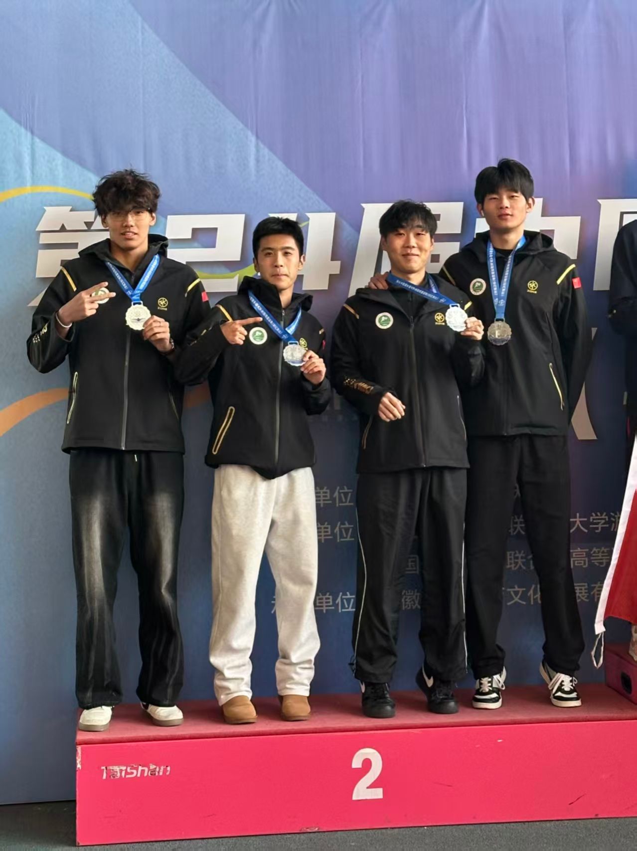 赛场上,我校体育教育训练学院运动训练专业24级和25级学生:宋梓翔、杨翼泽、王含舟和苏宸玄组成男子丁组4×100米自由泳接力队表现亮眼,以0.06秒的微弱差距屈居亚军。虽与金牌失之交臂,但这一成绩充分彰显了我校游泳队的强劲实力与冲击冠军的潜力。来自运动训练专业25级学生马家骐攻坚克难,在男子丙A组1500米400米中长距离自由泳项目中奋勇争先,最终斩获一项亚军及一项季军,并打破个人最好成绩同样来自运动训练专业的23级学生冷世航在比赛中充分发挥出了自己应有的训练水平,顽强拼搏取得男子丁组200米蛙泳季军。