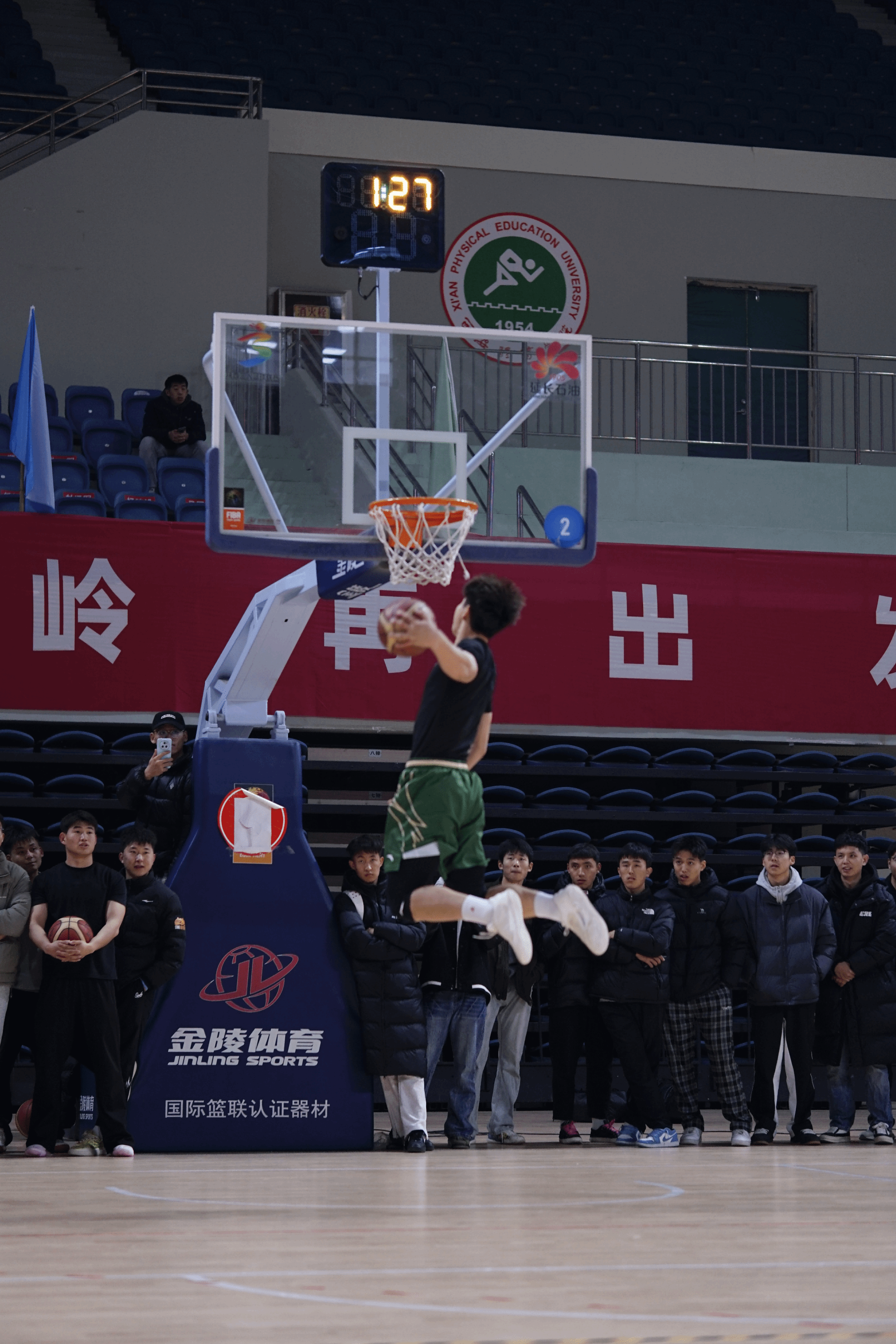 赛事间歇,多场精心编排的文艺表演以及扣篮、三分球大赛为激烈的比赛增添了别样风采。比赛开场前,车栋老师指导铿锵有力的安塞腰鼓表演,将非物质文化遗产的厚重感与体育的力与美相结合,弘扬了中华优秀传统体育文化;暂停时段里,闫晓老师指导的爵士舞表演动感十足,安建宇老师负责的有氧健身操展现出青春活力;苏珍珍老师指导的爵士啦啦操、街舞啦啦操的表演更是将赛场气氛推向高潮,与中场休息扣篮、三分球大赛燃爆全场的欢呼声相得益彰。系列表演从传统到现代,从本土到国际,既为师生们呈现了一场视觉盛宴,更从多个维度展现了体育院校学生德智体美劳全面发展的综合素质,为紧张的赛事注入了别样激情与活力,烘托出浓厚热烈的比赛氛围。