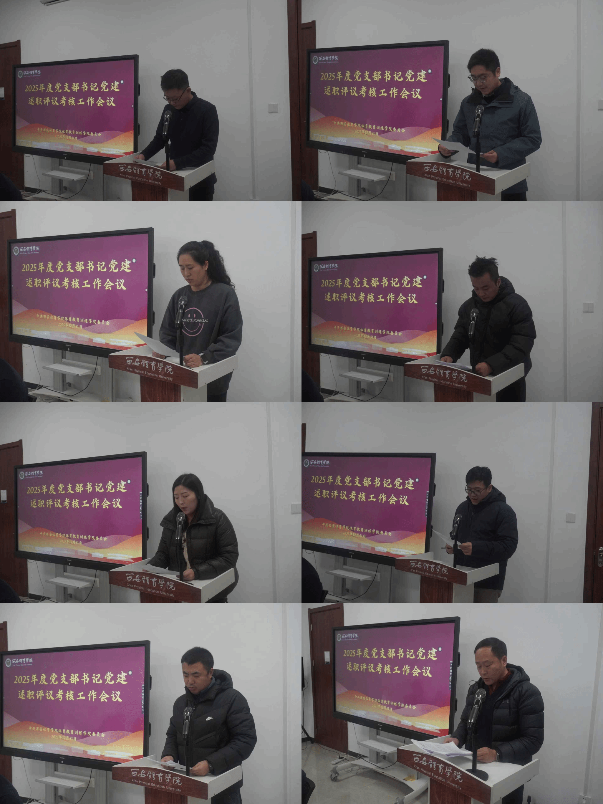 为全面总结2025年度学院党建工作成效,夯实基层党组织建设基础,深化“党建+高质量发展”双融双驱模式创新,12月31日上午十点,体育教育训练学院党委在橄榄球馆110会议室召开2025年度党支部书记党建述职评议考核工作会议。学院党委委员、纪委委员、各支部书记及各党支部代表参会,会议由学院党委书记卢喆主持。