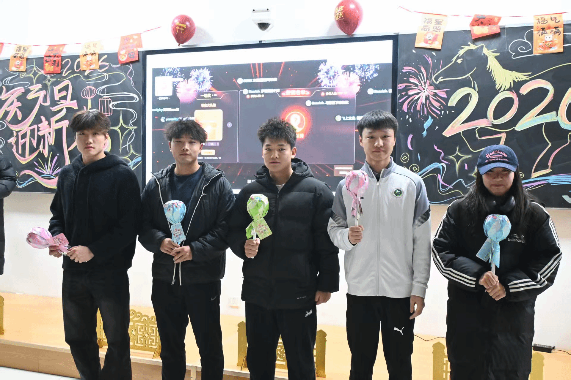 运动训练专业的同学们在206教室开展了游戏互动、新年寄语、歌曲演唱等活动,独唱与对唱环节更是将气氛推向高潮,同学们用歌声传递对新年的期盼与祝福。五小专业(休闲、社体、体能、特教、足球)则在541会议室呈现了具有专业特色的迎新节目,展现出体育学子多才多艺、朝气蓬勃的青春风采。值得一提的是,我院运动训练专业2024级30名同学代表学院赴含光校区主会场,献上气势恢宏的腰鼓表演《盛世鼓舞》。同学们精神抖擞、动作铿锵,以整齐划一的节奏与饱满激昂的表演,生动展现了体育人的活力与专业素养,将晚会推向高潮,赢得现场阵阵掌声。