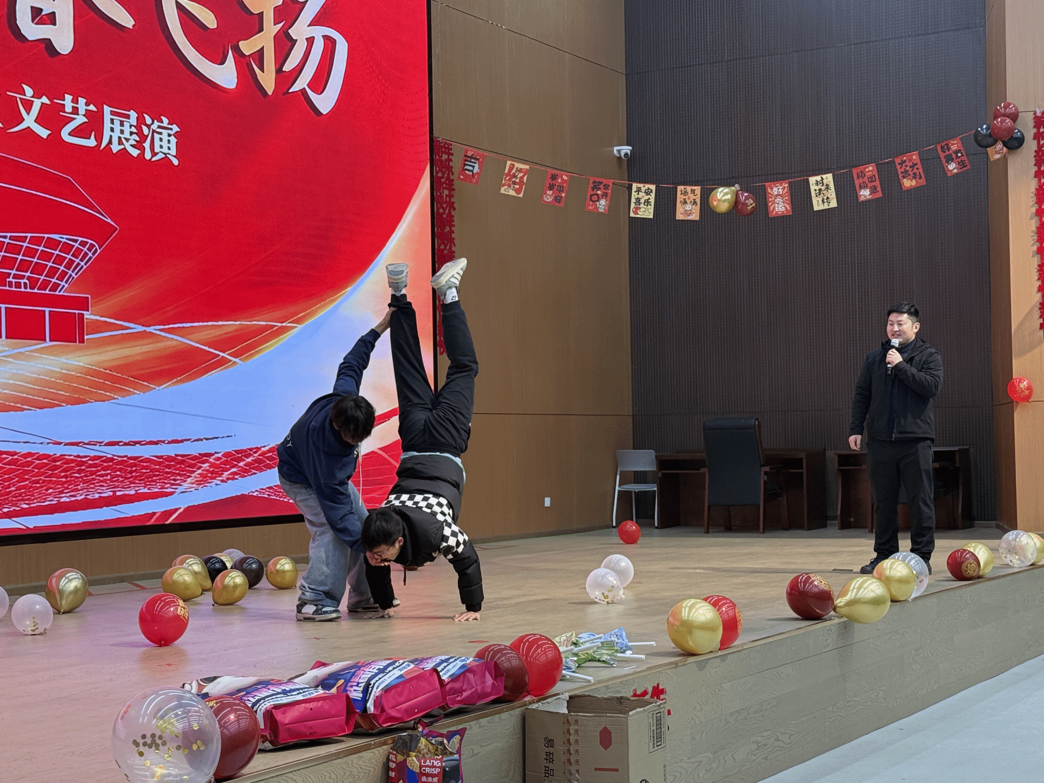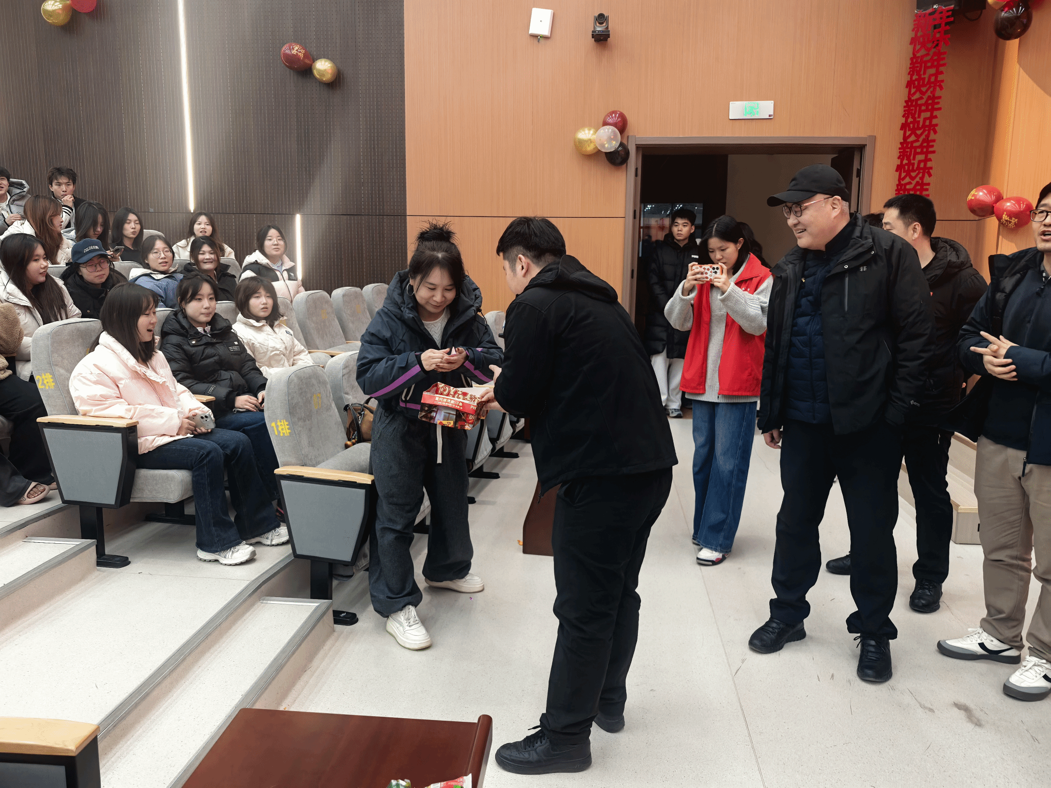 本次联欢活动中,各专业充分发挥特色,组织了形式多样的主题活动。体育教育专业在报告厅开展了内容丰富、趣味十足的联欢活动,体教专业大一、大二全体同学积极参与。在辅导员老师的精心组织下,在晚会正式开始前安排了“击鼓传花”“数字抱团”“幸运抽奖”等互动游戏,迅速点燃现场气氛,师生共同融入轻松愉快的节日氛围中。