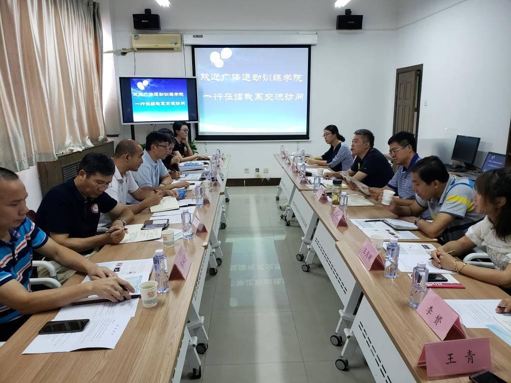 会上,张葆欣对孙健一行的到来表示欢迎,之后简要介绍了运动训练系建系历史,人才培养方案,科研训练以及大学生创新创业教育活动开展的现状等情况,并提出运动训练专业必须开拓视野,多向广州体育学院等兄弟院校学习借鉴,助推系部各项工作更好、更快发展;张卫国对系部党建及学生管理工作等方面做了介绍。孙健介绍了广州体育学院运动训练学院近几年在学科平台、人才培养等方面的经验做法,并希望两系优势互补、共同发展。之后双方在人才培养,专项体能培训项目等方面做了深入交流并初步达成一致。