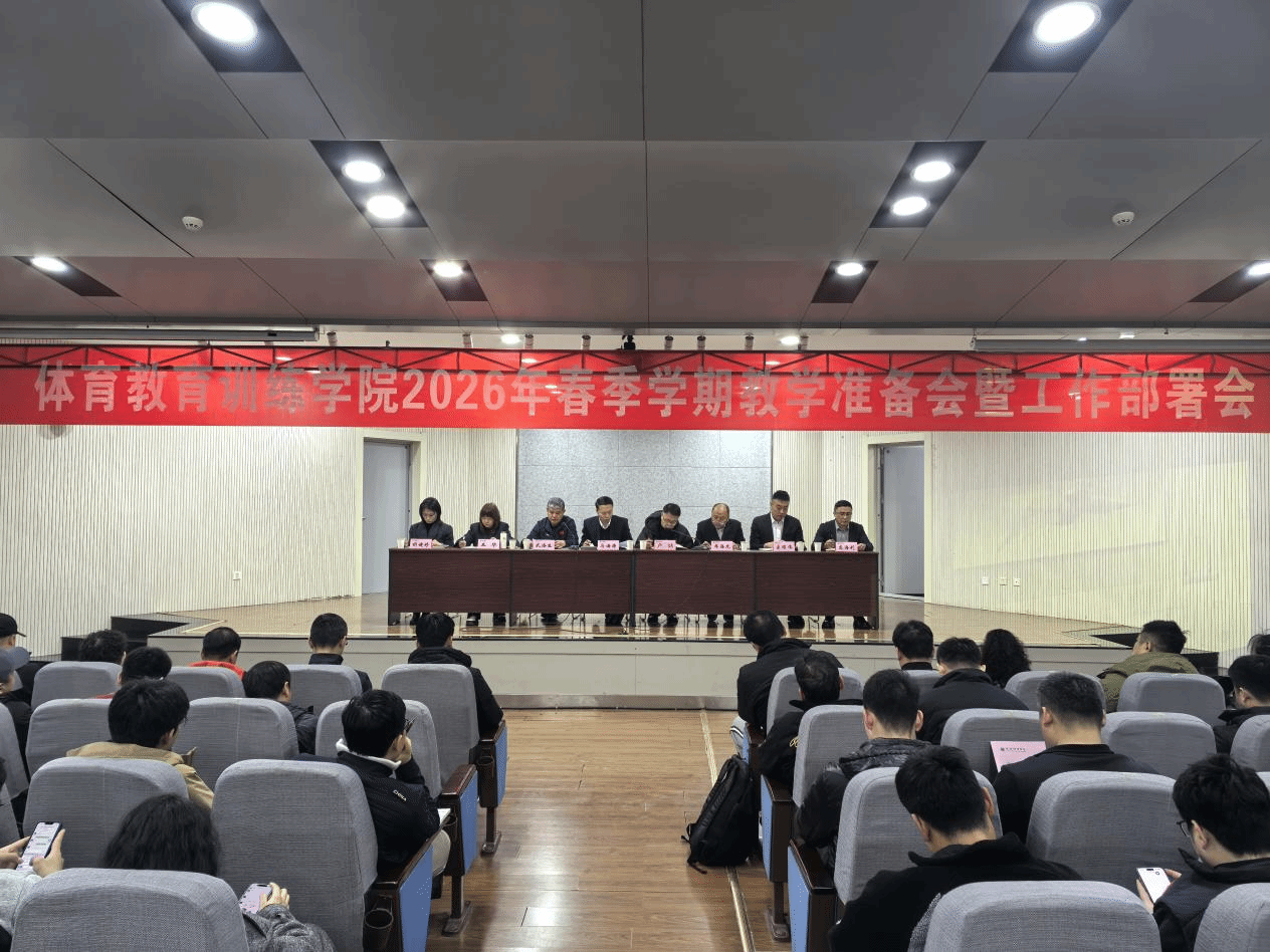 2026年2月28日下午两点半,体育教育训练学院在含光校区教学楼一楼报告厅召开2026年春季学期教学准备会暨工作部署会。学院全体教职工参会,会议由党委书记卢喆主持。