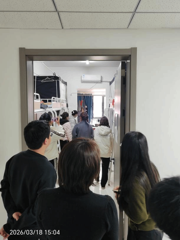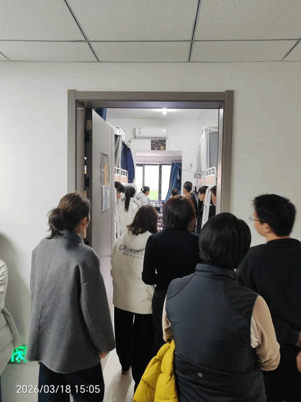 在年级辅导员管融资、袁景峰的向导下逐一观摩了体育教育专业2024级学生宿舍,宿舍文明卫生建设充分体现了辅导员在学生日常事务的管理水平和育人成效。本次活动以“学标杆、找差距、促提升”为核心,旨在通过全方位观摩,推动全校宿舍管理工作向内涵式发展迈进。
