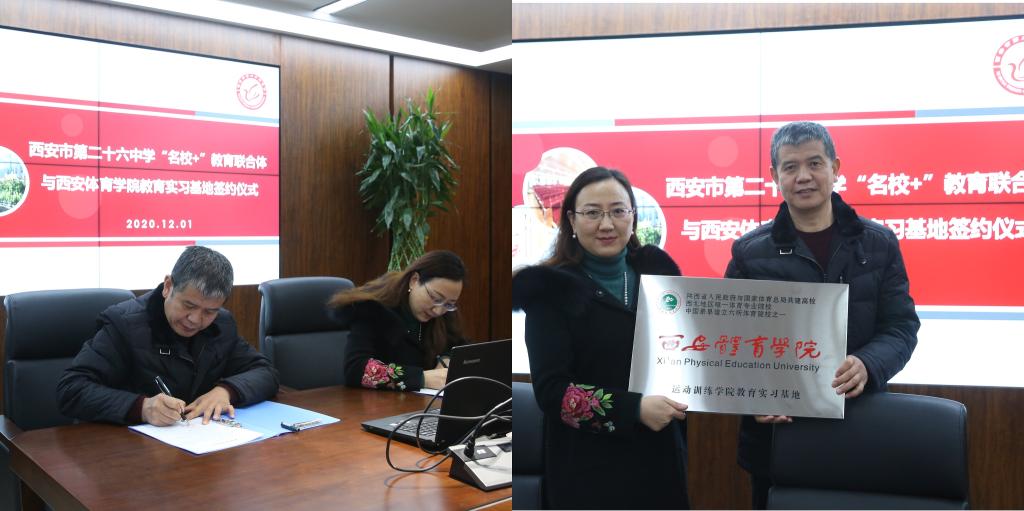 最后,双方在热烈的气氛中签署了合作协议,院长武洛生为西安市第二十六中实习基地授牌,过程简朴而隆重。本次签约挂牌仪式是西安体育学院运动训练学院与西安市第二十六中长期合作的开始。双方表示这是合作双赢、共谋发展的重要举措,将以此为契机,进一步加强校际之间的有效衔接、合作与交流,为新时期人才可持续发展和培养奠定坚实的基础。
