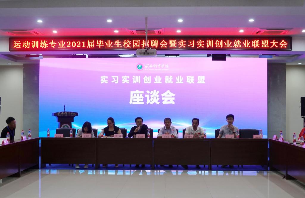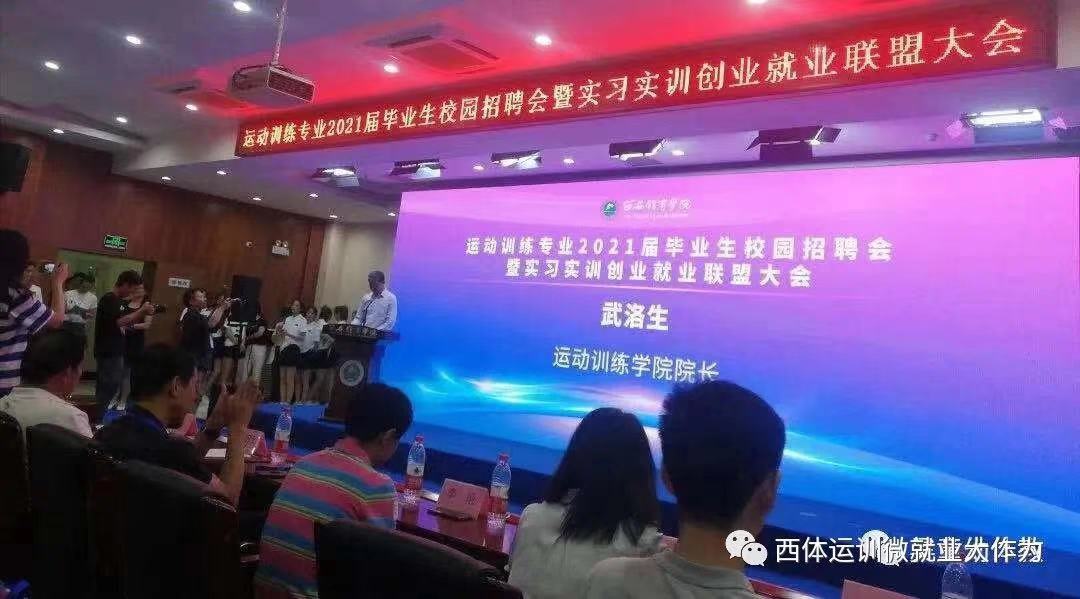 2021届毕业生校园招聘会暨实习实训创业就业联盟大会大会上,西安体育学院运动训练学院与22家企事业单位签订了实习实训创业就业战略合作协议,并为合作单位进行授牌。同时,为14名专业教师颁发了聘任证书,加强实习实训创业就业的实际效果。