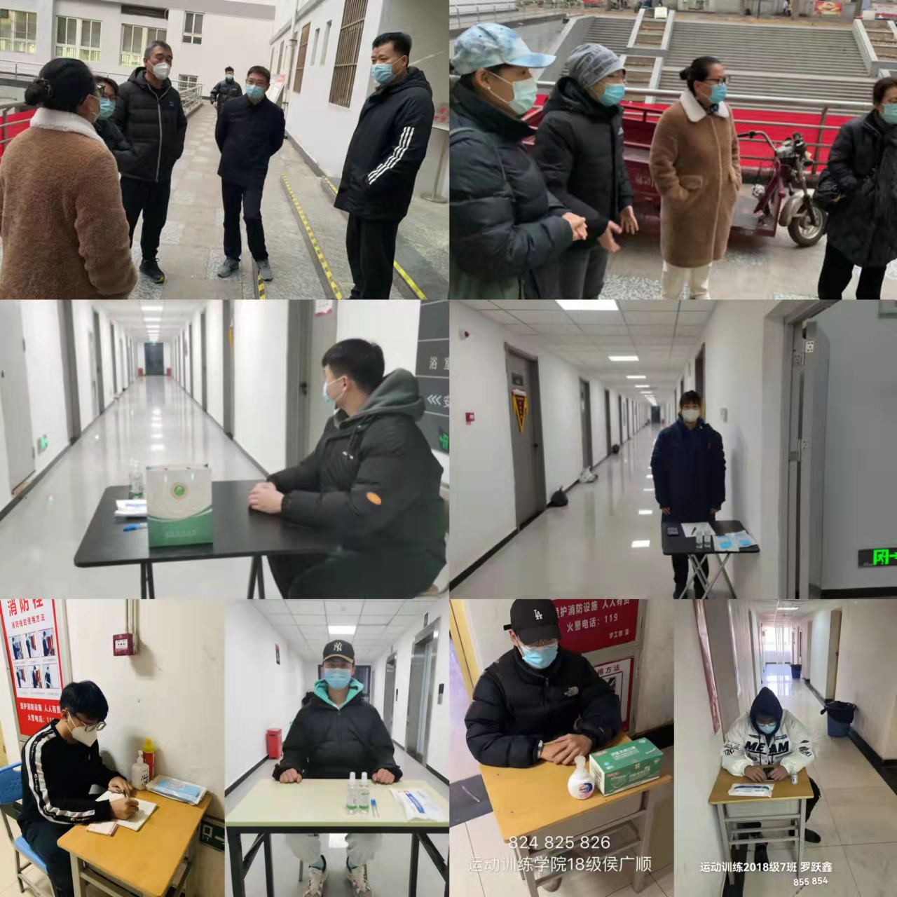 运训学子们不畏严寒,不辞辛苦,在食堂、宿舍、引导同学测量体温、进行登记,有序进出,引导购餐学生按要求排队等候,疏散聚集人员,确保食堂就餐有序安全。配合学院做好晨晚检、健康打卡、测量体温、消杀等工作。