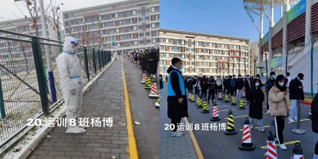 在严寒冬日里,志愿者们引导一批又一批同学们有序进行检测,保证了核酸检测工作的高效,为医护人员争取了时间,为学校树立高效有序抗疫的面貌贡献了力量。