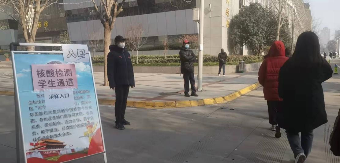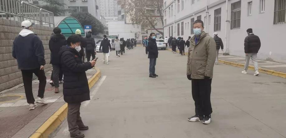 照片二十四:排球教研室教授赵文娟维持核酸检测秩序