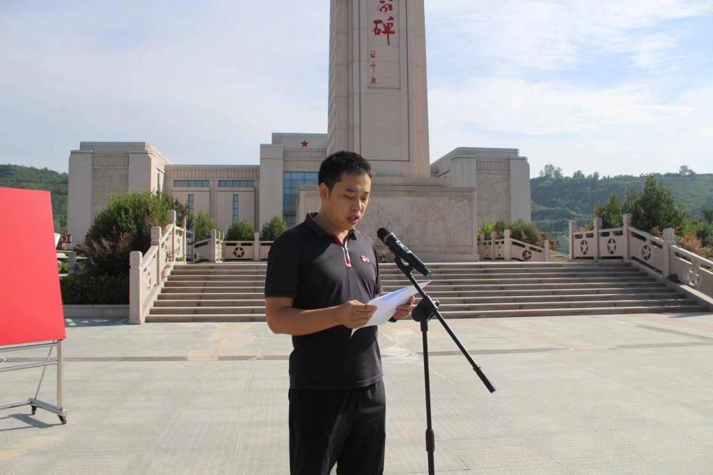 我院教职员工一行来到了位于宝鸡眉县的扶眉战役纪念馆,纪念馆里树木葱郁,烈士纪念碑高耸而庄严,全体教职员工向革命先烈默哀致敬、敬献花篮,在党政办刘志云主任的带领下面对党旗,庄严地举起右手,重温入党誓词,以铿锵有力的宣誓表达了为共产主义事业奋斗终身的坚定决心。